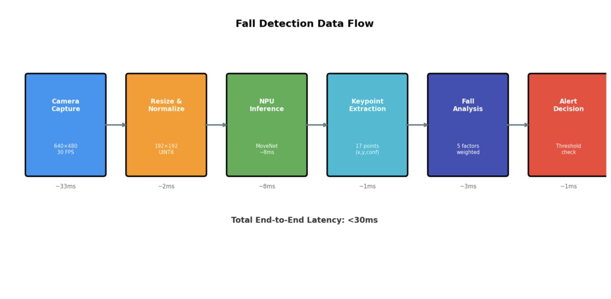 Real-time fall detection uses AI to instantly recognize when a person has fallen, triggering alerts without human intervention. In elderly care settings, this capability can be life-saving, especially when deployed directly on-device.